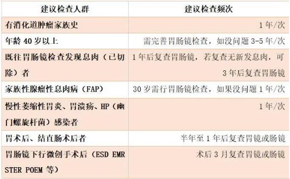40歲以上的人群,無論性别,建議做一次胃腸鏡檢查,如發(fā)現有潰瘍、息肉,做完治療還(hái)要定期複查。有消化道(dào)腫瘤家族史,如食道(dào)癌、胃癌或腸癌家族史,檢查年齡需提到35歲左右。不良生活習慣,抽煙、喝酒、飲食不規律、暴飲暴食,經(jīng)常吃腌制的食品、燒烤以及工作壓力特别大、經(jīng)常熬夜的人群需要進(jìn)行胃腸鏡檢查。